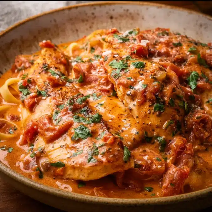 If you have leftovers, let the dish cool completely before transferring it to an airtight container. You can store it in the refrigerator for up to 3 days. For longer storage, consider freezing the chicken and sauce in a freezer-safe container for up to 3 months. Just thaw and reheat before serving.